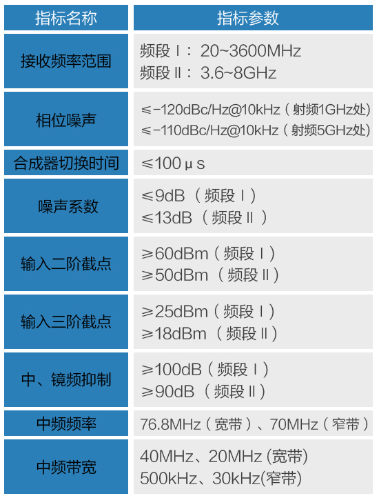 应用 ● 适用于超短波及微波频段各种无线信号接收 ● 无线电监测、侦察及无线频谱管理 ● 射频微波测试仪表 ● 多波道测向、阵列接收机 ● 频谱分析仪、信号分析仪