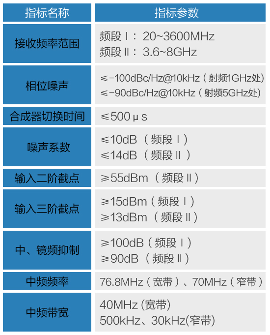 应用 ● 适用于超短波及微波频段各种无线信号接收 ● 无线电监测、侦察及无线频谱管理 ● 射频微波测试仪表 ● 多波道测向、阵列接收机 ● 频谱分析仪、信号分析仪